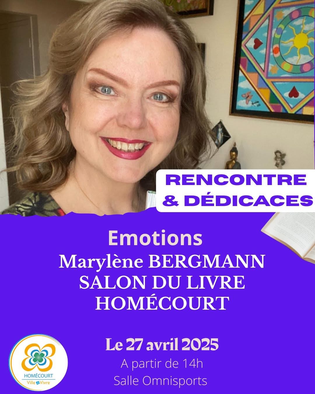 Dimanche 27 avril | Rencontre | Marylène Bergmann dédicacera Émotions de 14h à 18h au salon du livre de Homécourt (54) qui se tiendra à partir de 10h dans la salle Omnisports de cette commune de Meurthe-et-Moselle.