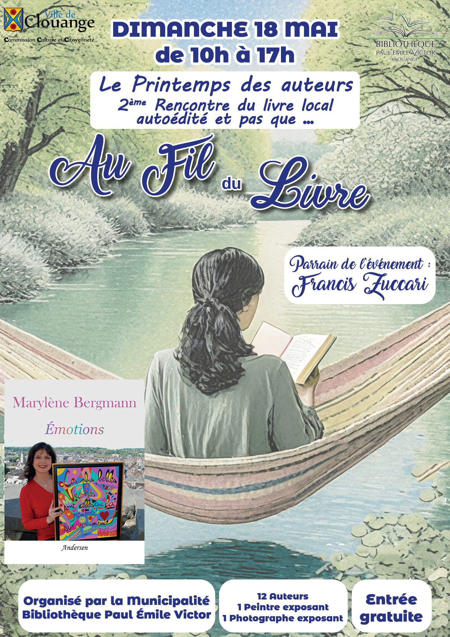 Dimanche 18 mai | Rencontre | Marylène Bergmann dédicacera Émotions dans le cadre du Printemps des auteurs à Clouange (Moselle) de 10h à 17h (Bibliothèque Paul-Émile-Victor, 2 Rue Leclerc, 57185 Clouange).