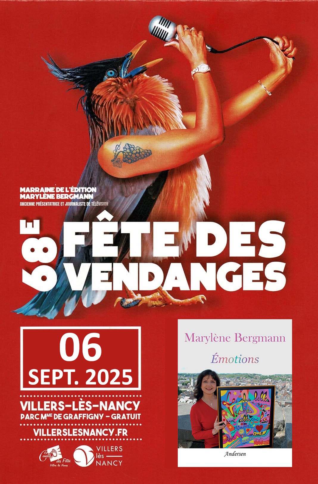 Samedi 6 septembre | Rencontre | Marylène Bergmann dédicacera Émotions de 14h à 16h lors de la fête des vendanges de Villers-lès-Nancy dont elle sera la marraine.