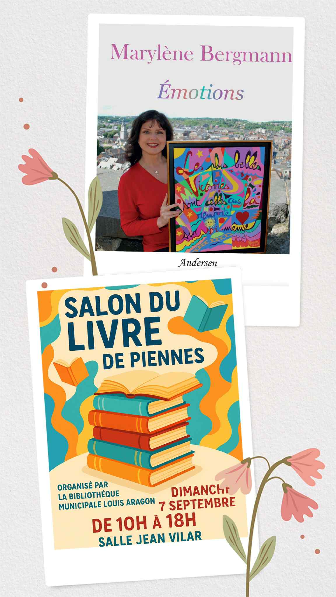 Dimanche 7 septembre | Rencontre | Marylène Bergmann dédicacera Émotions de 10h à 18h lors du salon du livre de Piennes qui se tiendra à la bibliothèque municipale Louis-Aragon.