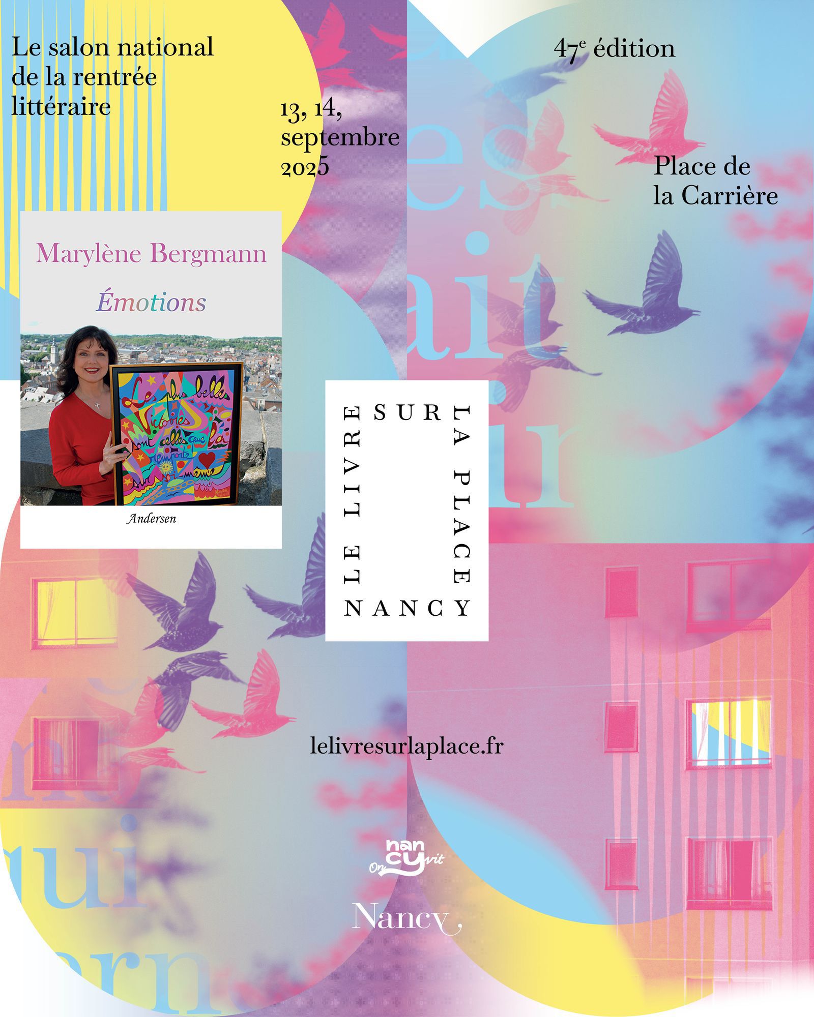 Samedi 13 & dimanche 14 septembre | Rencontre | Marylène Bergmann dédicacera Émotions à Nancy lors du Livre sur la Place sur le stand de la librairie Didier de 10h à 19h le samedi et de 10h à 18h le dimanche.