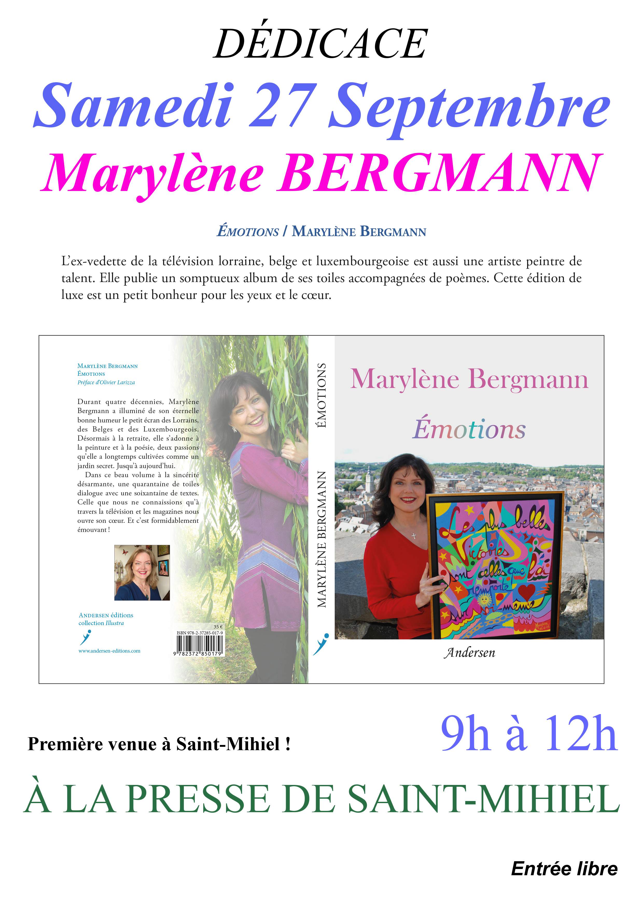 Samedi 27 septembre | Rencontre | Marylène Bergmann dédicacera Émotions à la Presse Saint-Mihiel (7 rue Notre-Dame 55300 Saint-Mihiel) de 9h à midi.