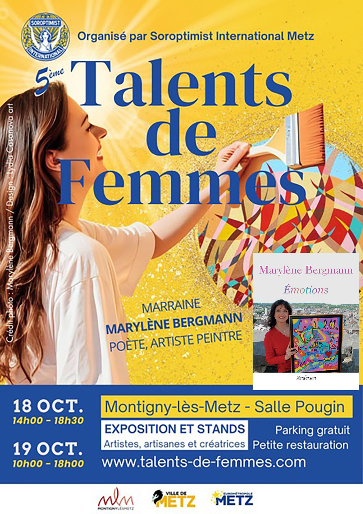 Samedi 18 & dimanche 19 octobre | Rencontre à Montigny-lès-Metz (57) | Marylène Bergmann dédicacera Émotions à Montigny-lès-Metz lors du salon Talents de Femmes dont elle sera la marraine. Rencontre le samedi de 14h à 18h30 et le dimanche de 10h à 18h.