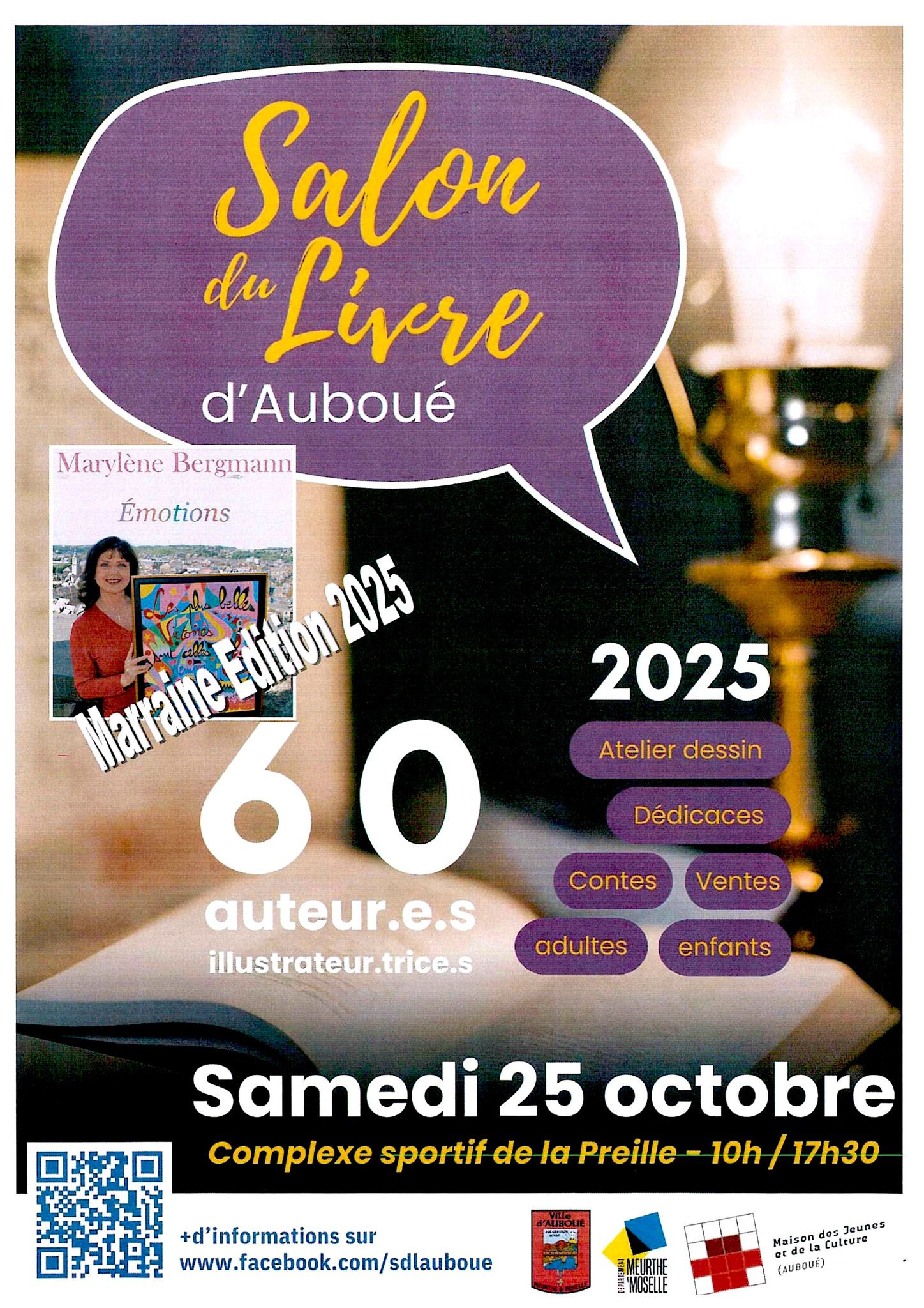 Samedi 25 octobre | Rencontre à Auboué (54) | Marylène Bergmann dédicacera Émotions à Auboué (54) lors du salon du livre qui se tiendra au complexe sportif de la Preille de 10h à 17h30.